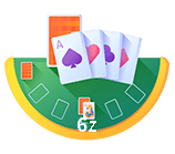 Interaja com um crupiê real e outros jogadores enquanto joga o clássico jogo de cartas Blackjack. O objetivo é ter um valor de mão mais próximo de 21 do que a mão do crupiê, sem ultrapassar 21.